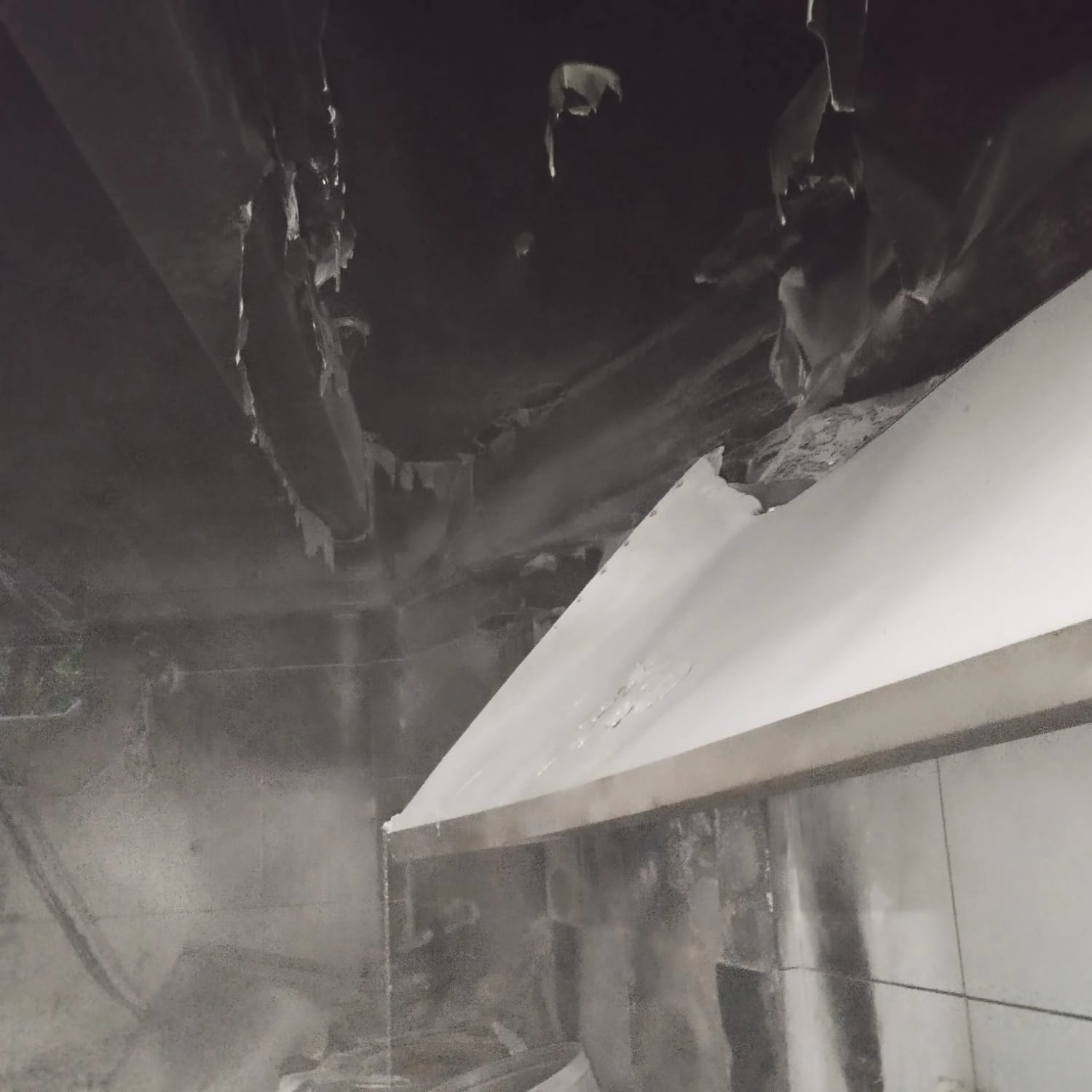 Na chegada ao local foi verificado que o ambiente da área de produção encontrava-se tomado por uma densa camada de fumaça, fazendo-se necessário a progressão dos bombeiros para o interior do ambiente com uso de equipamentos de proteção respiratória afim de identificar o exato local das chamas, localizado as chamas constatou-se que as mesmas estavam concentradas em um ambiente onde havia equipamentos do tipo fritadeiras, estando as chamas localizadas na gordura utilizada nestes equipamentos.