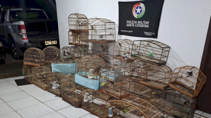 Polícia Militar Ambiental resgata 35 pássaros em cativeiro em Lages